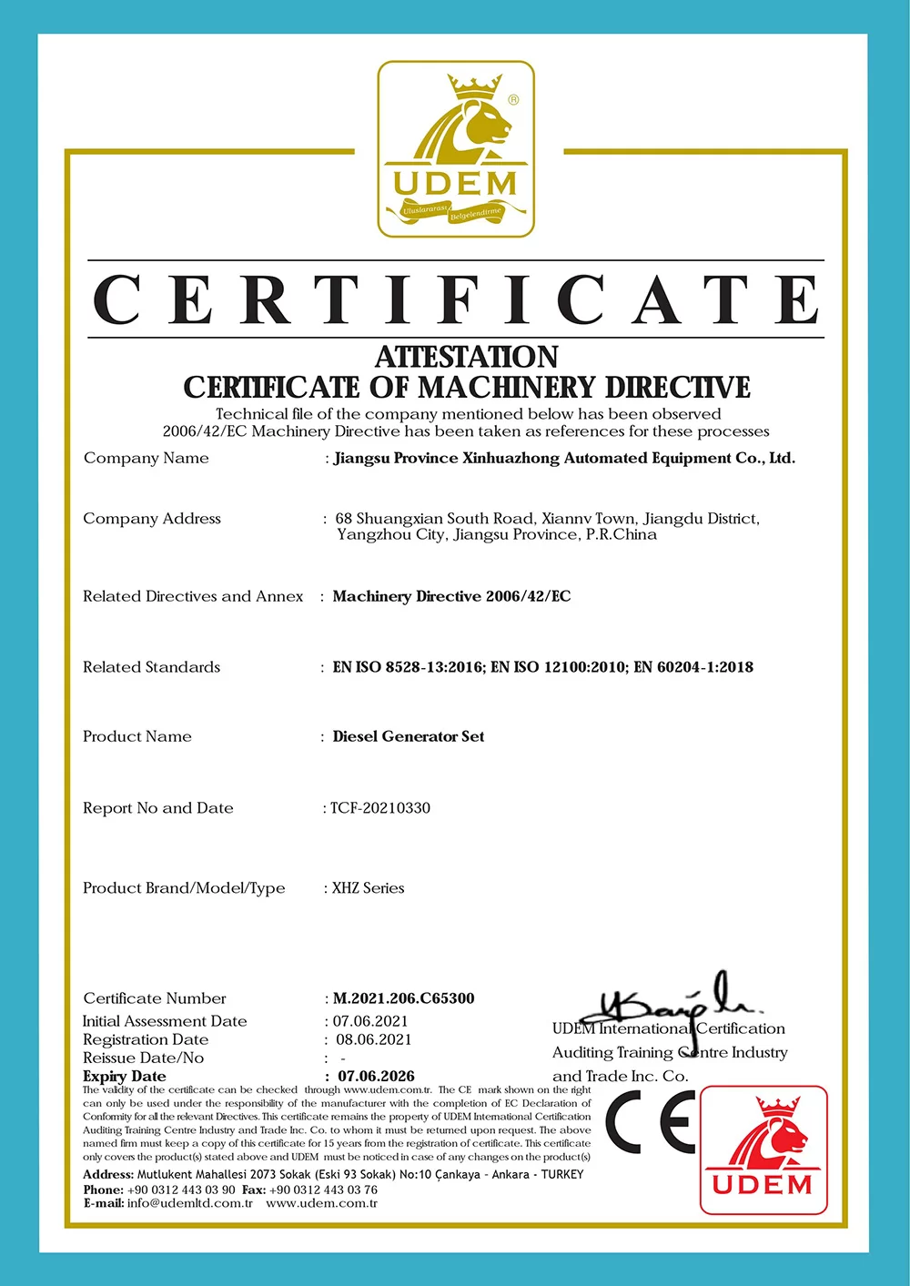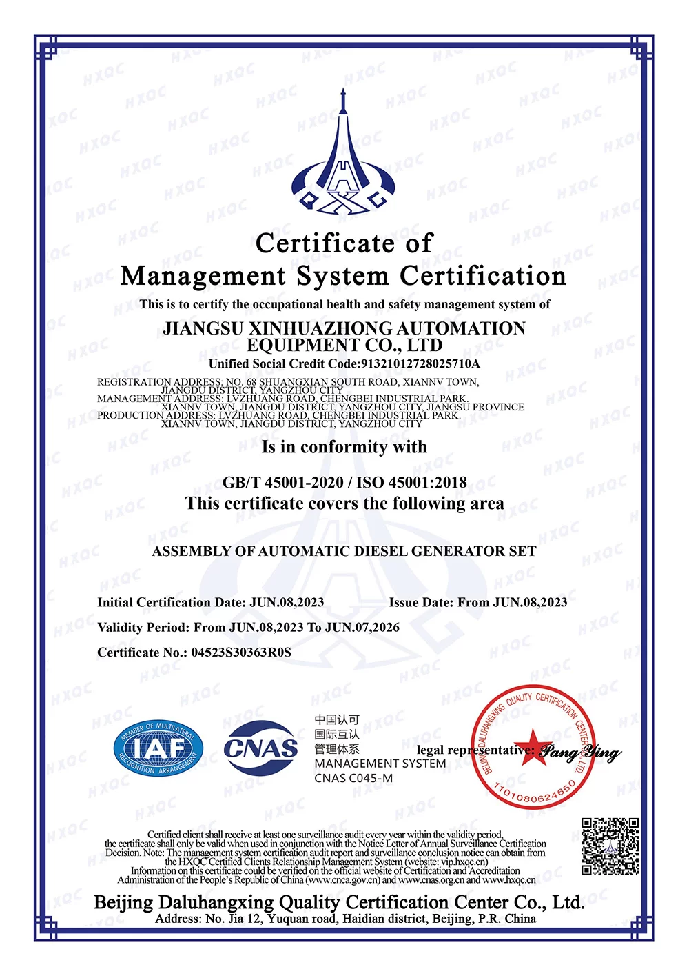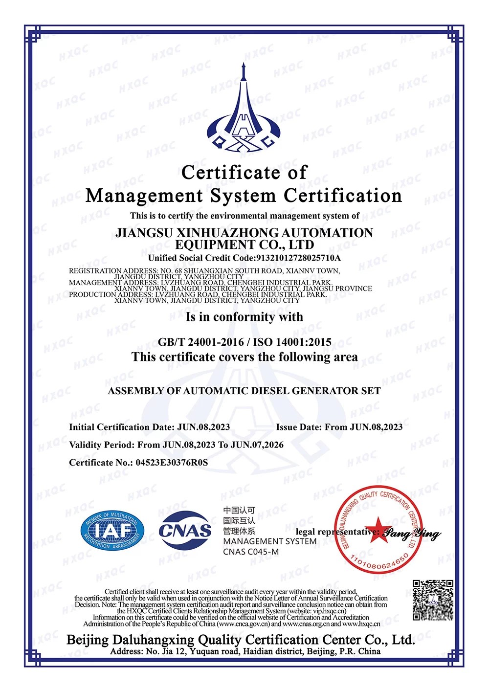 In 2001, the company was renamed Jiangsu Xinhuazhong Automatic Equipment Co., Ltd. and a new production plant of 6,600 square meters was built.